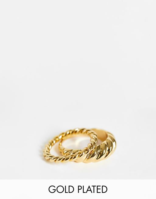 ASOS DESIGN – Ringar 14 k guldplätering med vriden design i 2-pack