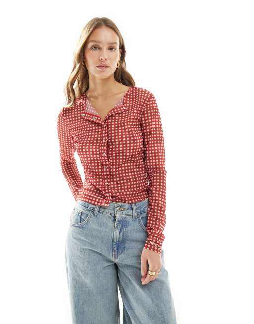 ASOS DESIGN – Röd, ginghamrutig kofta i mesh