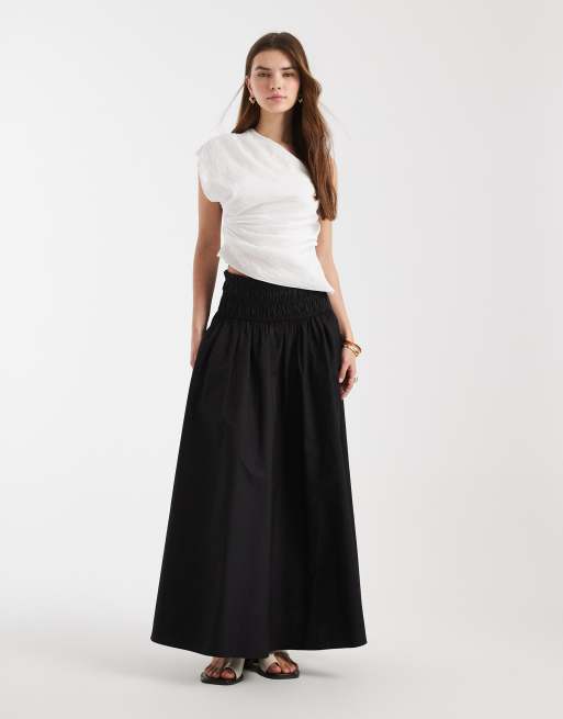 ASOS DESIGN – Röd maxikjol med smockad midja