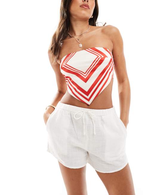 ASOS DESIGN – Röd och vit bandeau-topp med knytning baktill, stretch och scarffåll