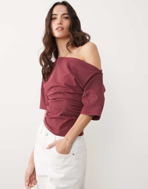 ASOS DESIGN – Röd- och vitrandig topp med båtringning och markerad midja