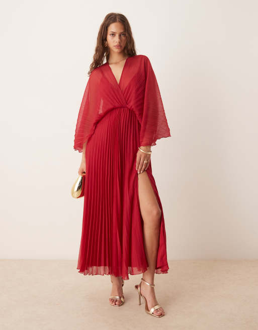 ASOS DESIGN – Röd, plisserad maxiklänning med cape