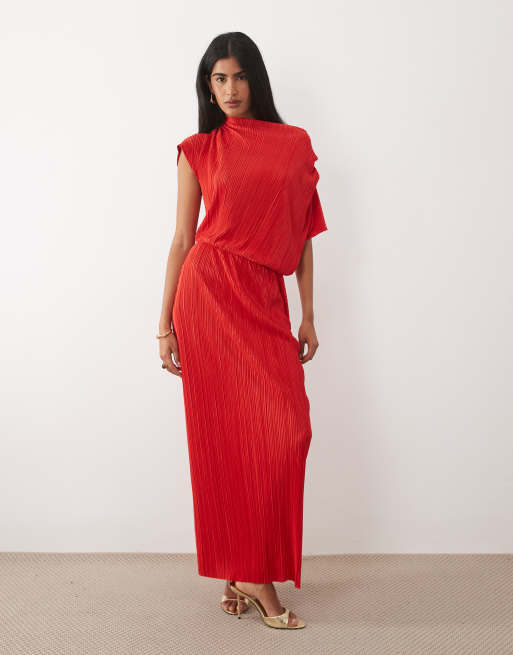 ASOS DESIGN – Röd, plisserad midiklänning med draperad midja