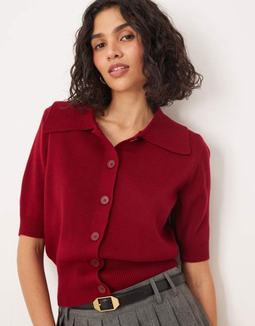 ASOS DESIGN – Röd, strukturstickad kofta i pikéstil