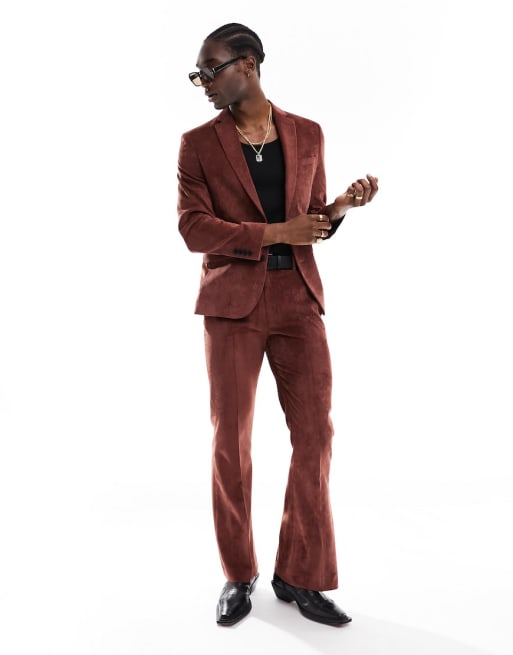 ASOS DESIGN – Röd, utsvängd kostym i manchester