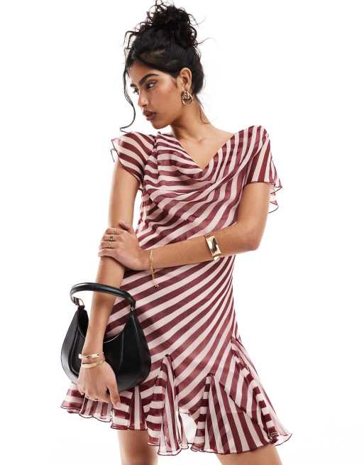 ASOS DESIGN – Rödrandig miniklänning med draperad ringning och klockad kjol
