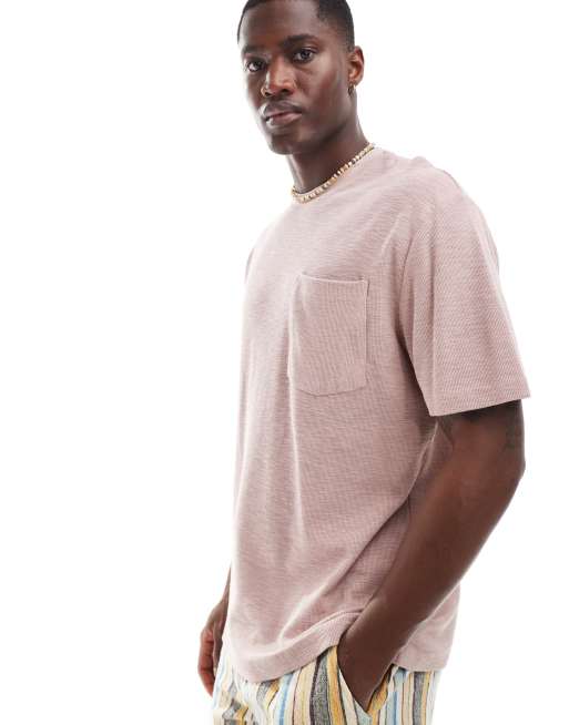 ASOS DESIGN – Rosa avslappnad t-shirt i linnelook med ficka