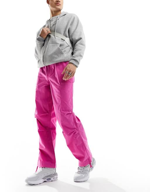 ASOS DESIGN – Rosa cargobyxor i poplin med vida ben