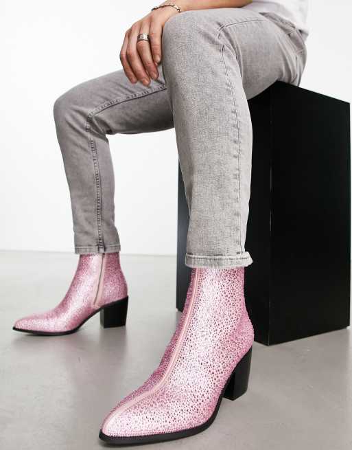 ASOS DESIGN – Rosa chelseaboots i läderimitation med klackar och strassdetaljer