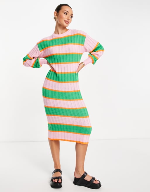 ASOS DESIGN – Rosa, flerfärgat randig, stickad midiklänning