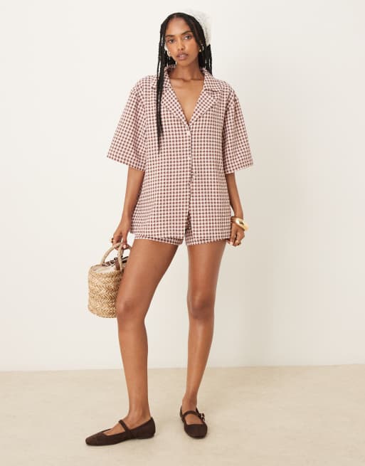 ASOS DESIGN – Rosa, ginghamrutig skjorta med bowlingkrage