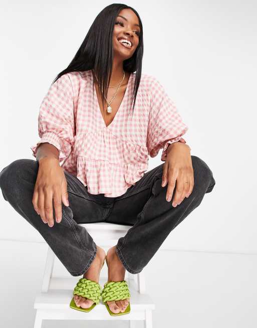 ASOS DESIGN – Rosa ginghamrutig topp i bäckebölja med paneler