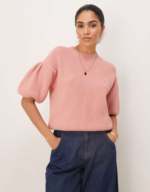 ASOS DESIGN – Rosa, grovstickad t-shirt