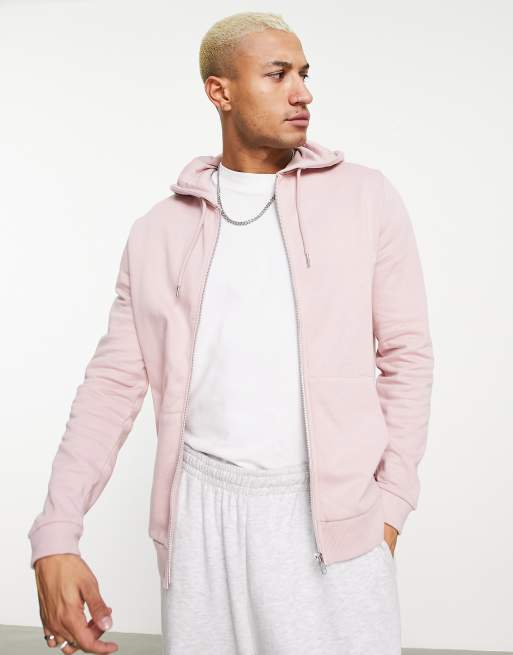 ASOS DESIGN – Rosa huvtröja med dragkedja