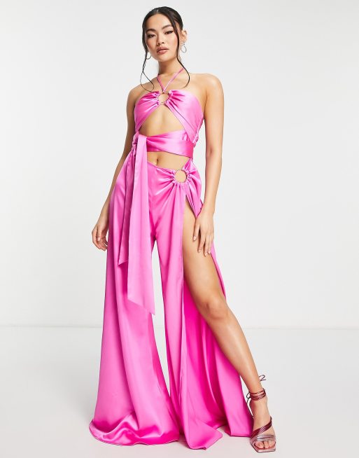 ASOS DESIGN – Rosa jumpsuit i satin med ring, halterneck och utskurna detaljer