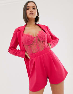 ASOS DESIGN – Rosa kostym i omlottmodell med skärp