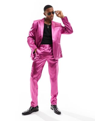 ASOS DESIGN – Rosa kostymjacka i satin med extra smal passform