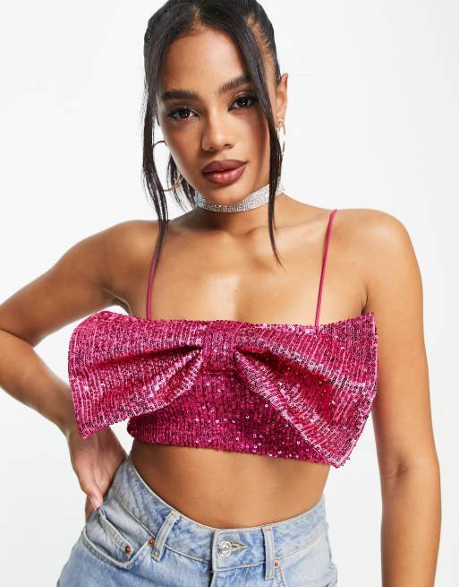 ASOS DESIGN – Rosa linne med rosett och paljetter