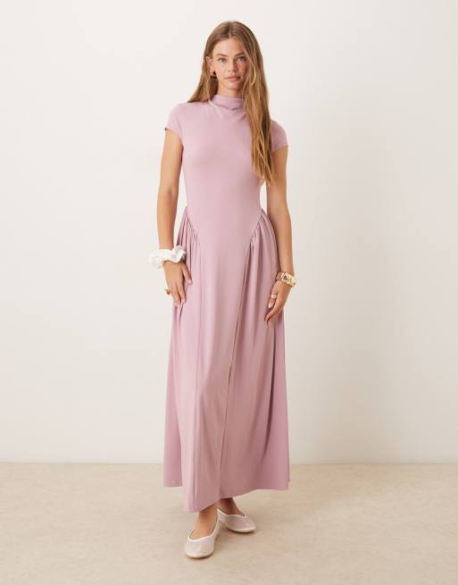 ASOS DESIGN – Rosa maxiklänning med holkärmar och formad höft