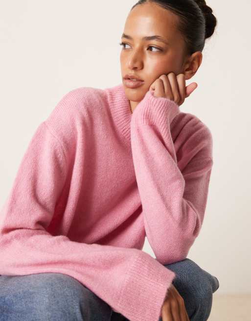 ASOS DESIGN – Rosa, mjuk, stickad tröja i oversize med rund halsringning