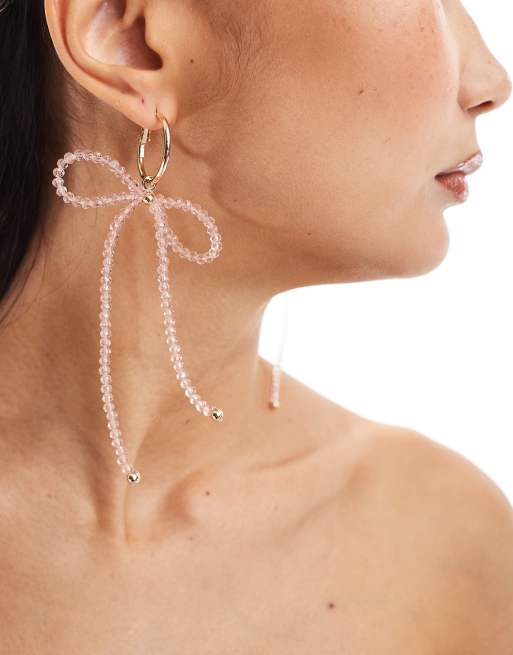 ASOS DESIGN – Rosa och guldfärgade, hängande örhängen med rosett med facetterade pärlor