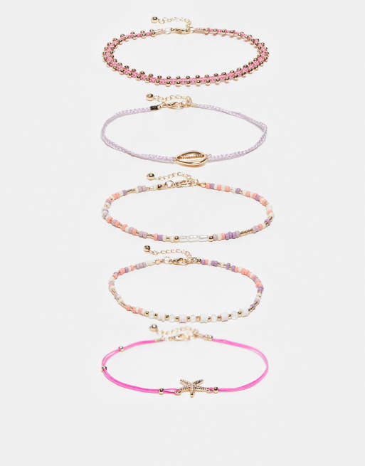ASOS DESIGN – Rosa och orange fotlänkar med havsberlocker i flerpack