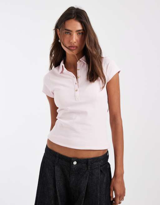 ASOS DESIGN – Rosa pikétröja i krympt design