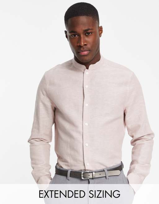 ASOS DESIGN – Rosa regular finskjorta med mandarinkrage i linne