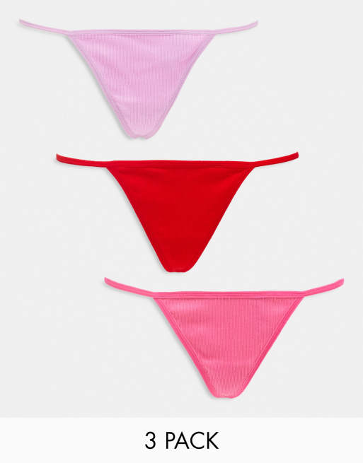 ASOS DESIGN – Rosa, ribbade stringtrosor i bomull, 3-pack