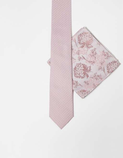 ASOS DESIGN – Rosa set med smal slips och blommig bröstnäsduk