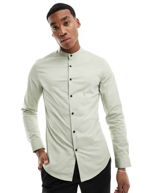 ASOS DESIGN – Rosa skjorta med extra smal passform och murarkrage