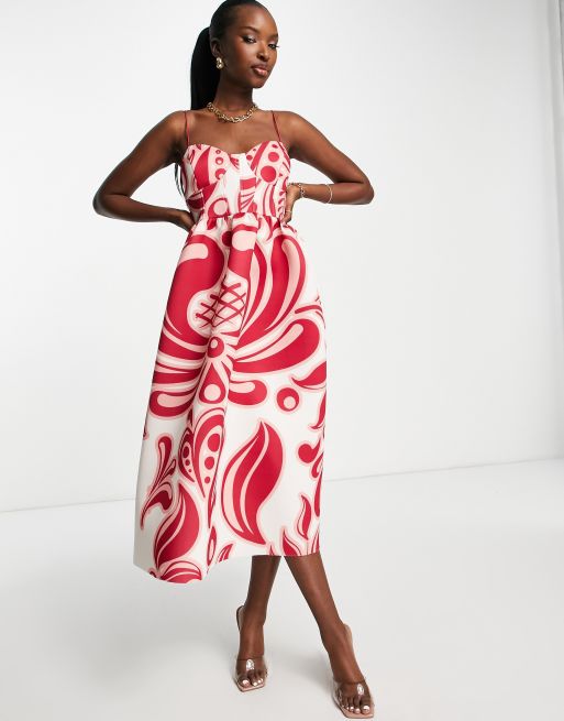 ASOS DESIGN – Rosa stort paisleymönstrad balklänning med kupor i midilängd
