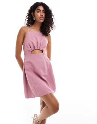 ASOS DESIGN – Rosa, strukturerad miniklänning med fyrkantig ringning, korsade band och utskurna detaljer