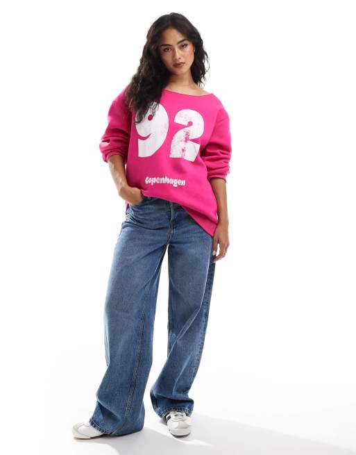 ASOS DESIGN – Rosa sweatshirt med off shoulder och 'Copenhagen'-tryck
