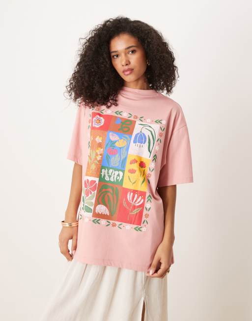 ASOS DESIGN – Rosa t-shirt i oversize med blommig kanttryck