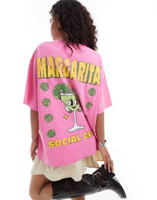 ASOS DESIGN – Rosa t-shirt i oversize med "Margarita"-tryck