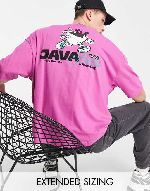 ASOS DESIGN – Rosa t-shirt i oversize med tecknat tryck