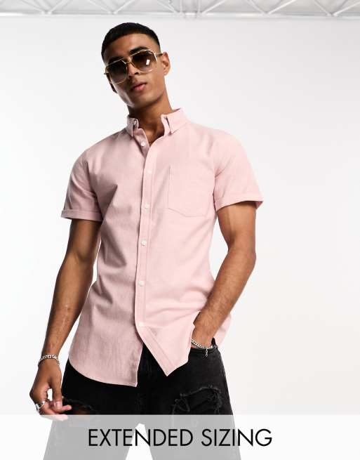 ASOS DESIGN – Rosa, textilfärgad oxfordskjorta med smal passform