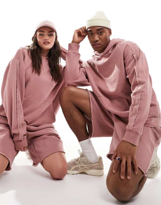ASOS DESIGN – Rosa, tvättad, oversize huvtröja i unisex-modell med dekorativ söm