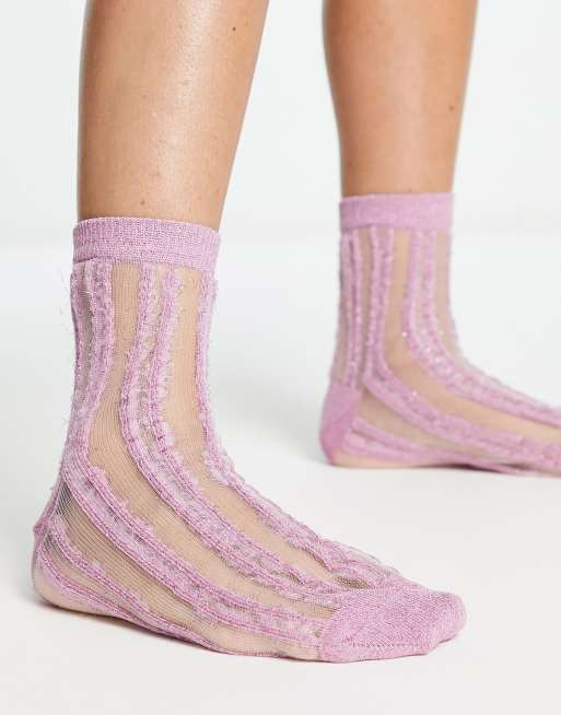 ASOS DESIGN – Rosaglittriga, randiga strumpor i skir mesh av lurex