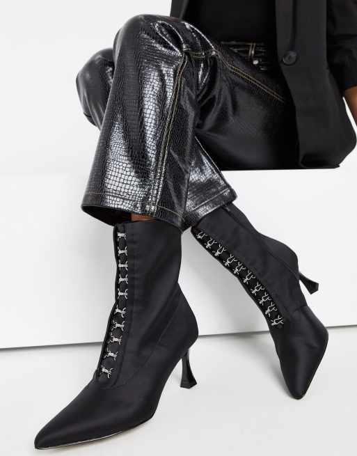 ASOS Design – Rosalie – Svarta spetsiga boots i satäng