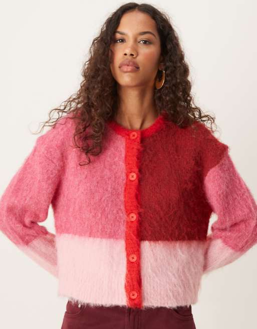 ASOS DESIGN – Rosarandig, borstad kofta med rund halsringning