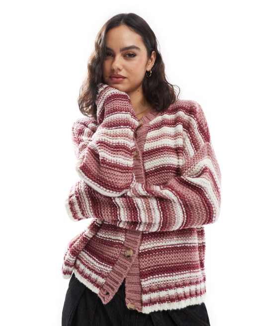ASOS DESIGN – Rosarandig, stickad kofta med rund halsringning