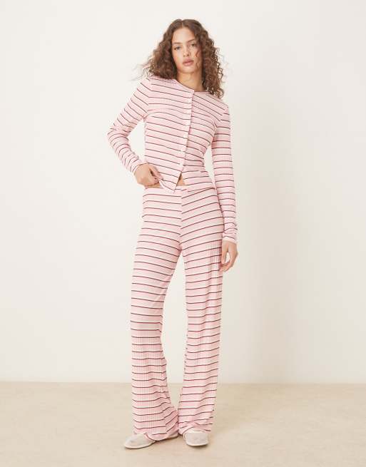ASOS DESIGN – Rosarandiga byxor med vida ben, del av set