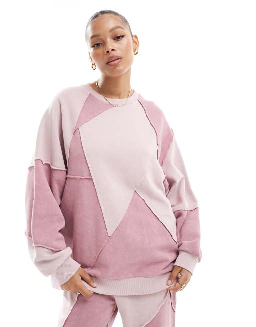 ASOS DESIGN – Rosatvättad sweatshirt i oversize med lappade detaljer, del av set
