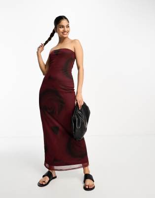 ASOS DESIGN – Rosmönstrad bandeau-midiklänning i mesh