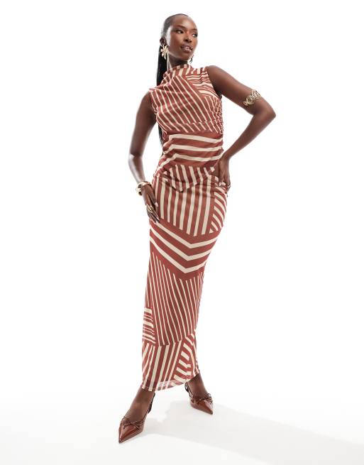 ASOS DESIGN – Rostfärgad, randig maxikjol i mesh, del av set