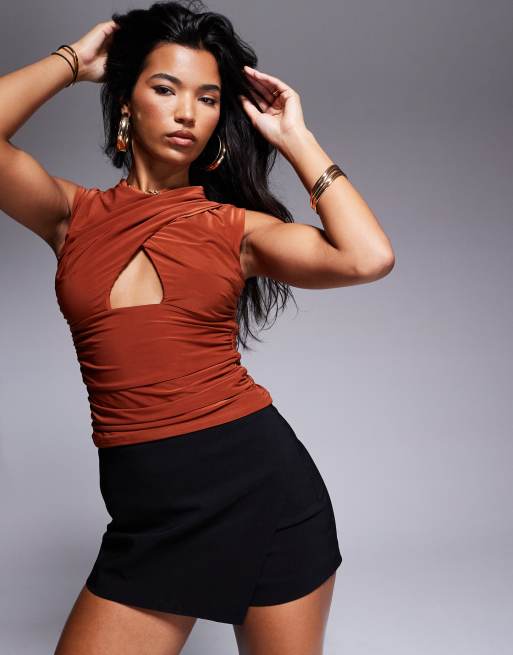 ASOS DESIGN – Rostfärgad topp med korsade holkärmar och utskurna detaljer