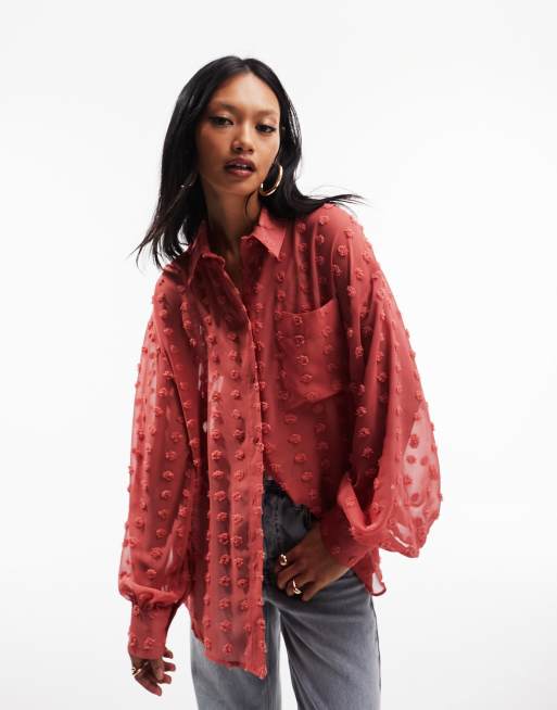 ASOS DESIGN – Roströd dobbyvävd skjorta i oversize