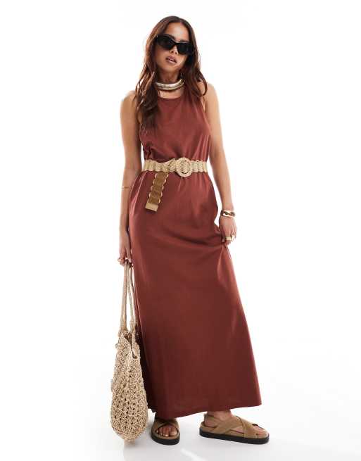ASOS DESIGN – Roströd, rak midiklänning med snurrad knut baktill
